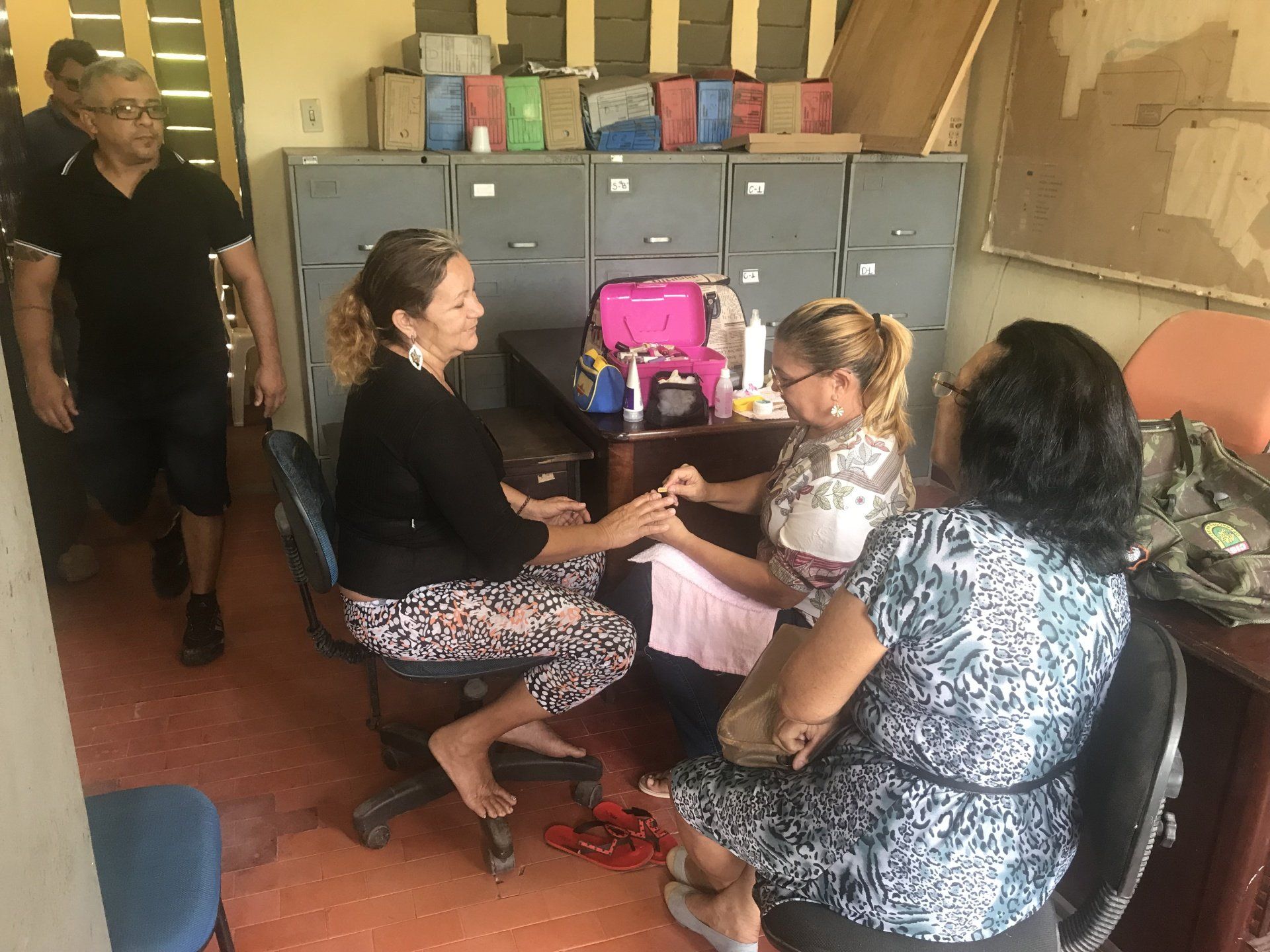 Os serviços apresentados aos associados do interior foram corte de cabelo masculino e feminino, teste de glicemia, pressão arterial e manicure. Além dos serviços, houve um momento de reunião com os presentes aonde foram abordados assuntos do interesse da classe, atualização cadastral para o Sistema da Associação e em alguns municípios, contamos com a presença de uma equipe do RH do Dnocs, administrado pelo servidor e associado Marley Cisne de Moraes.